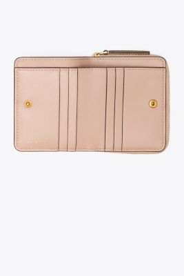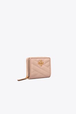 The Kira Bi-Fold Wallet is made of soft chevron-quilted leather with beveled Double T hardware. It is perfectly sized for mini bags, with multiple compartments, including a coin pocket.