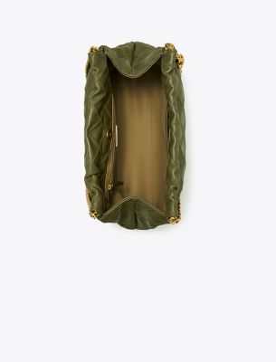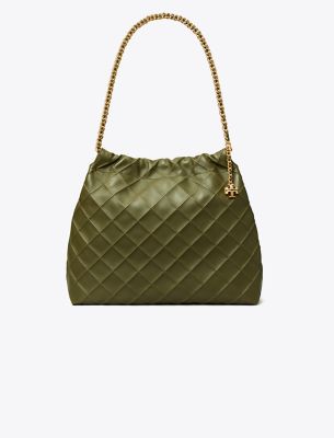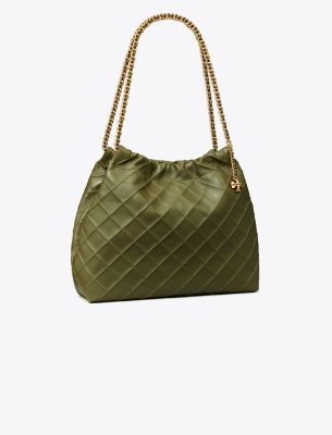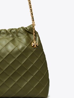 Enduring glamour. Soft and slouchy, the Fleming Drawstring Bag is finished with diamond pattern pintucks and a braided chain strap.