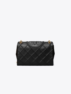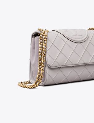 Enduring glamour. The new Fleming Soft Convertible Shoulder Bag is updated with pintucks in a diamond pattern and the softest leather. The feminine silhouette is sealed with an oversized bombé Double T. Braided with brushed chain, the strap can be worn long or short.