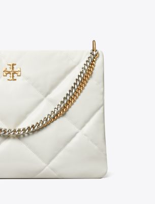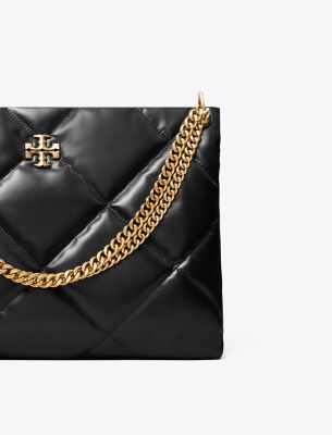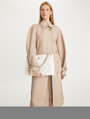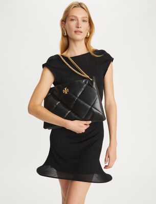 The Kira Diamond Quilt Satchel is irresistibly soft with blown-up diamond quilting. Pillowy dimension on a classic shape, punctuated by beveled Double T hardware. Wear the curb chain strap doubled over the shoulder or long and crossbody.