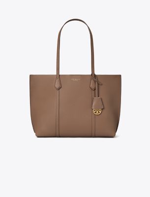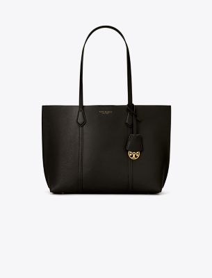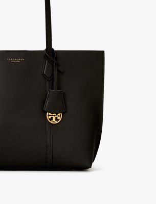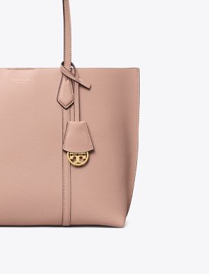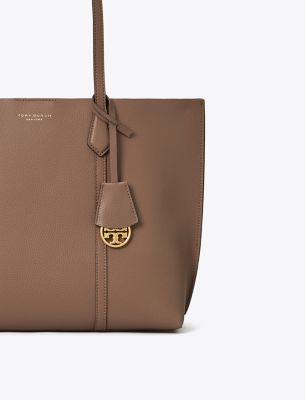 A thoughtful approach to extreme function. The Perry tote is updated with additional pockets for organization, longer straps that fit comfortably over the shoulder and extra room — with a center zip compartment that fits a laptop. Made of Italian pebbled leather, it now has protective feet and comes with a removable charm, in tonal or contrast colors.