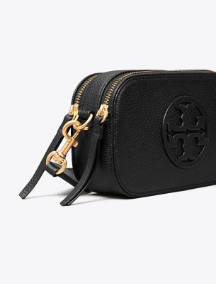 From our signature collection. The Mini Miller Crossbody Bag is crafted in soft pebbled leather with two zippered compartments and a laser-cut Double T. Wear it with or without the removable strap.