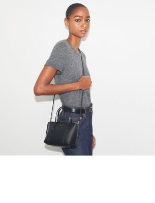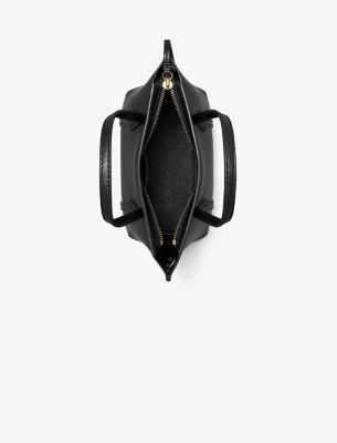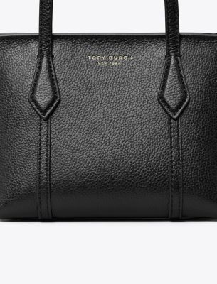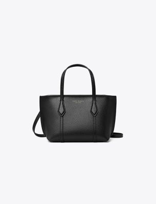 Minimalist and multitasking, the Mini Perry Tote is designed with a removable crossbody strap. Lined in soft cotton with an interior pocket and finished with slim top handles.