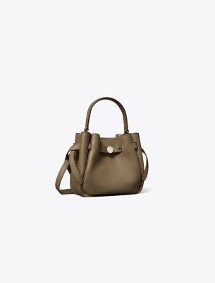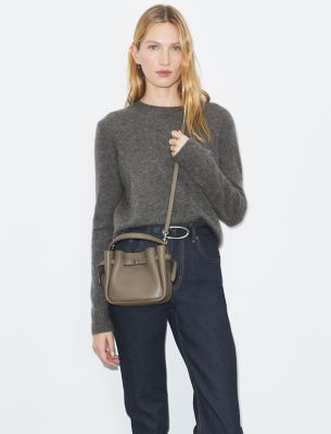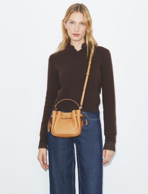 The ultimate everyday handbag. The Mini Romy Bucket Bag is crafted in soft pebbled leather with a gently gathered silhouette. Lightweight with an interior organized with a pocket, it can fit a phone, wallet and keys. Detailed with a slim belt and our button logo. Carry it top-handle style or over the shoulder. Crafted in partnership with a Leather Working Group-certified tannery, supporting high standards in leather manufacturing and chemical management.• Height: 6.1″ (15.5cm); length: 6.3″ (16cm); depth: 3″ (7.5cm)