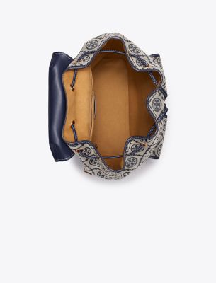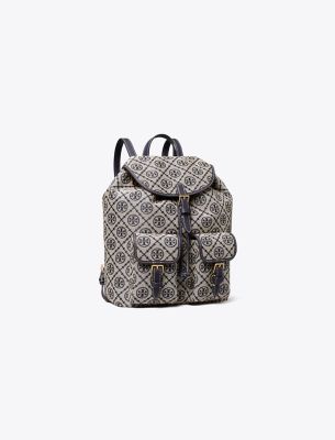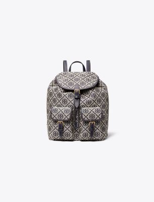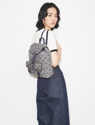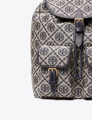Our signature motif. The collection speaks to the timelessness of great style. Crafted in woven jacquard, the T Monogram Backpack is designed with a drawstring closure and two front buckled pockets. Lined in soft microsuede, the interior has a zip pocket to organize small essentials. Adjustable shoulder straps make it perfect for commuting or running errands. • Height: 11.4″ (29cm); length: 9.7″ (24.5cm); depth: 4.7″ (12cm) • 56% cotton, 44% polyester jacquard; leather trim • Microfiber lining with a suede-like finish • Drawstring closure; flap with magnetic snap under buckle • Top handle with 3.4″ (8.5cm) drop; adjustable shoulder straps with 11″ (28cm) drop • 2 exterior front buckle pockets,1 interior zipper pocket • Dust bag included • Style number: 183815
