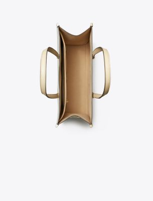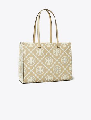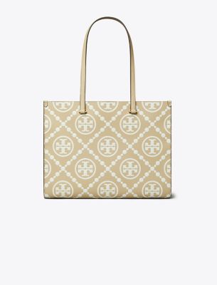 The T Monogram tote is lined in soft microsuede, with interior pockets for organization, including one for a laptop. Every detail is considered, with special attention to function and versatility.