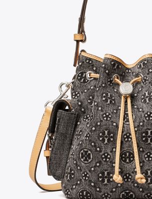 T Monogram Denim Bucket Bag with Pockets
