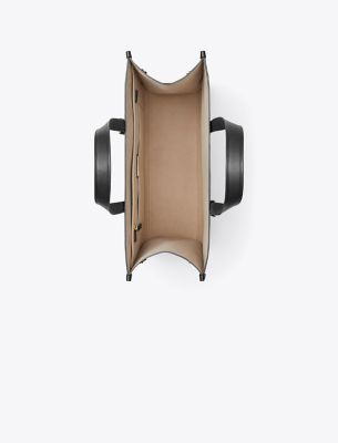 The T Monogram tote has an adjustable shoulder strap and room for a laptop. Lined in soft microsuede, the interior has pockets for organization. Every detail is considered, with special attention to function and versatility.