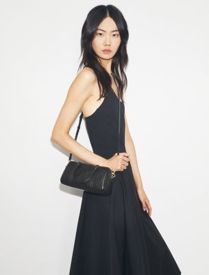 • Top handles with 3.5″ (9cm) drop; adjustable, removable crossbody strap with 22.2″ (56.5cm) drop