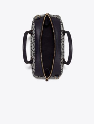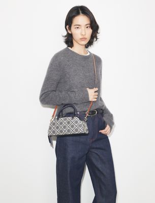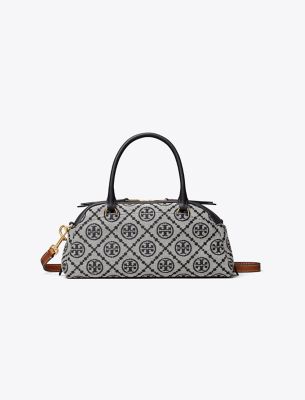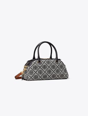 The Small Bowler nods to vintage bowling bags with its curved silhouette, zip closure and tubular top handles. Crafted in our signature T Monogram jacquard, the compact shape is designed with a removable crossbody strap and interior pocket. • Height: 4.7″ (11.8cm); length: 9.1″ (23cm); depth: 3.9″ (10cm) • 56% cotton, 44% polyester jacquard; leather trim • Zipper closure • Top handles with 3.2″ (8cm) drop; adjustable, removable crossbody strap with 22.2″ (56.5cm) drop • 1 interior pocket • Dust bag included • Style number: 178801
