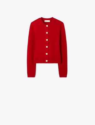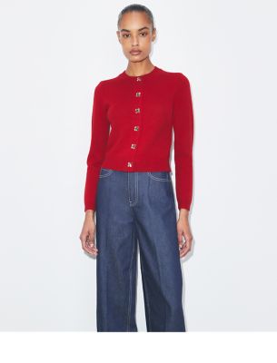 Our cardigan is knit from ultra-soft cashmere, with two-tone flower snaps. It is a versatile separate with a slightly shrunken fit. Wear it day to night, styled under a structured blazer, paired with denim or layered over a dress.