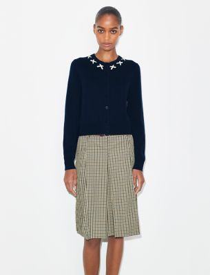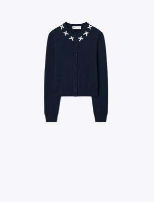 Our cardigan is knit from a soft merino and cashmere blend, with decorative embroidery at the neckline. It is a versatile separate with a slightly shrunken fit.• Classic fit• 70% wool, 30% cashmere• Button closure at center front• Decorative X-stitch at neckline• Length: 18.9″ (47.9cm); sleeve length: 30.7″ (77.9cm) based on size S• Dry clean• Style number: 174678