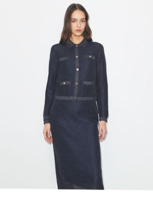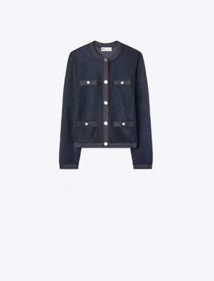 A tailored take on the ladylike sweater. The Kendra Cardigan is knit from lightweight metallic knit mesh with contrast trim. It is a polished and versatile layer to wear over everything from t-shirts to dresses.• 65% polyester, 20% metallic fibre, 15% polyamide• Metal button closure at center front and pockets• Faux pockets at chest; functional pockets at waist• Length: 18.9″ (47.9cm); sleeve length: 29.1″ (74cm) based on size XS• This style’s fabric is delicate and can easily catch or snag. Please handle with care.• Dry clean• Style number: 167225