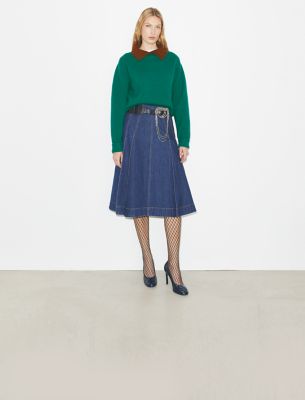 Pleated Denim Skirt