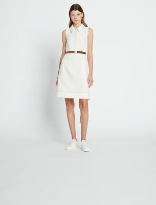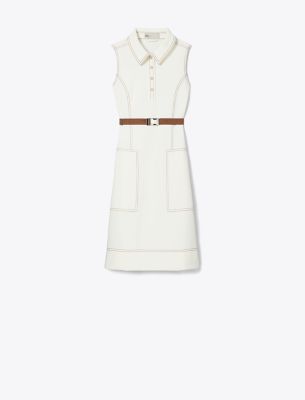 A polished dress designed for on-the-course performance. The sleeveless golf dress features pick stitch detailing and side-seam patch pockets. Engineered to wick moisture and offer superior flexibility.
