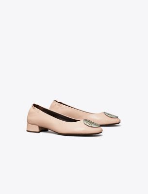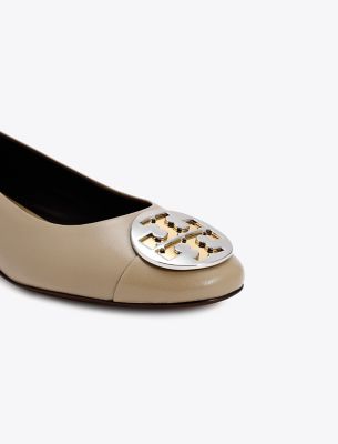 A classic, reimagined. Named for American designer Claire McCardell who introduced ballet flats in the 1940s and empowered women by breaking fashion rules. The new Claire Heel Ballet pairs modern elements — a high vamp, cap toe and two-tone metal hardware — with a comfortable block heel for an elevated look. A ruched back adds a gentle grip, advancing the long-lasting wearability.