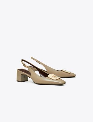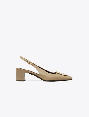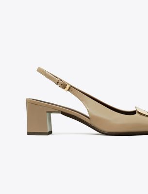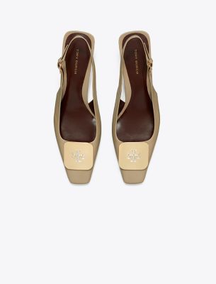 Spring introduces a modern update to our Georgia slingback heel. The square toe design is complemented by a metal logo plate featuring a scaled-down contrast Double T. A cushioned insole and buckled ankle strap ensure a comfortable and secure fit.