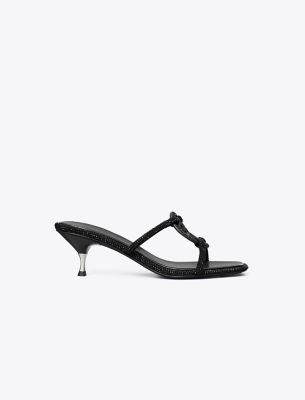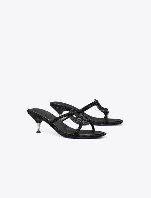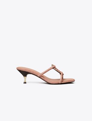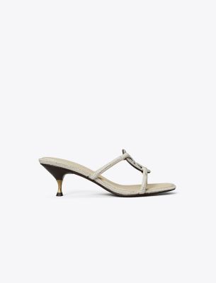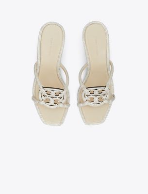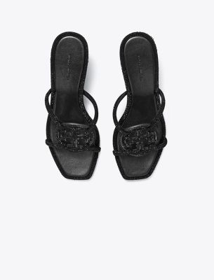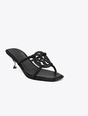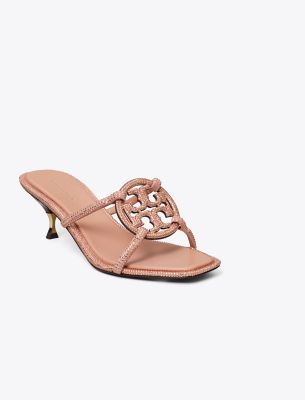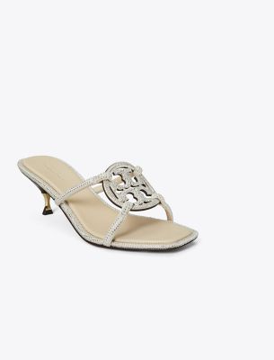 Our signature sandal through a late ’90s filter. The Miller Heel is designed with a bombé Double T elevated in crystal pavé, hand-stitched insole and gold-tipped low heel. The slip-on silhouette and ultra-padded footbed ensure long-lasting comfort.