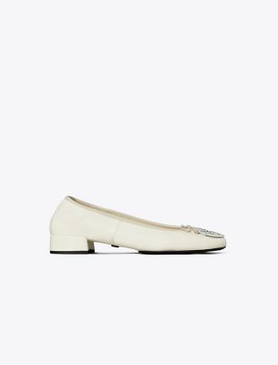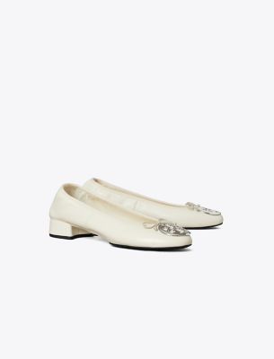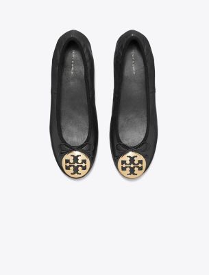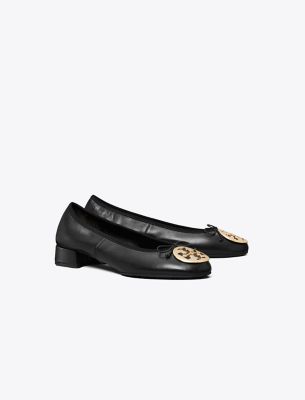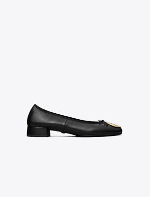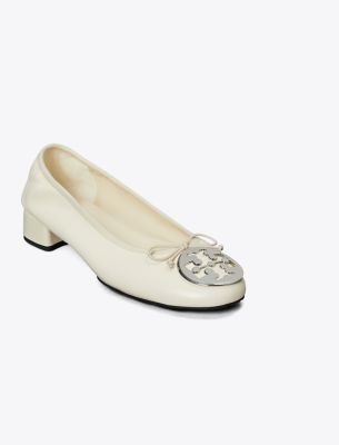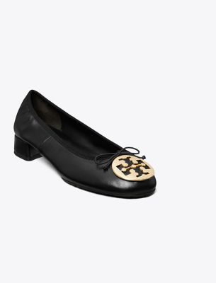 Our iconic flat is updated with a low block heel and delicate bow. Crafted from super-soft leather with an elasticated top edge. The signature medallion, in a sleek beveled shape, molds perfectly to your foot. A variation on the new Reva ballet, a reimagined version of the original iconic flat, launched in 2006 and named after Tory’s mom. Crafted in partnership with a Leather Working Group-certified tannery, supporting high standards in leather manufacturing and chemical management.• Approximately 0.98″ (25mm) heel • Napa leather upper; elastic binding and bow • Metal logo coin • Cushioned leather footbed • Napa leather lining • Rubber sole • Dust bag included • Style number : 179311